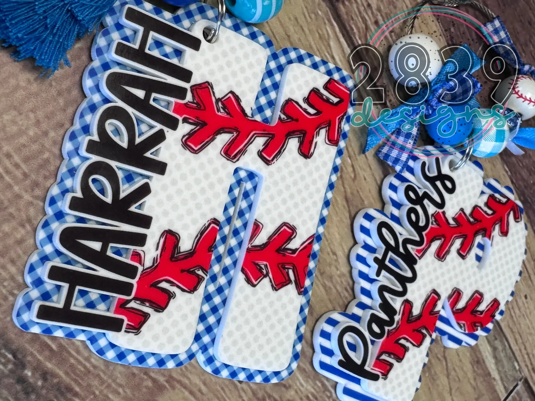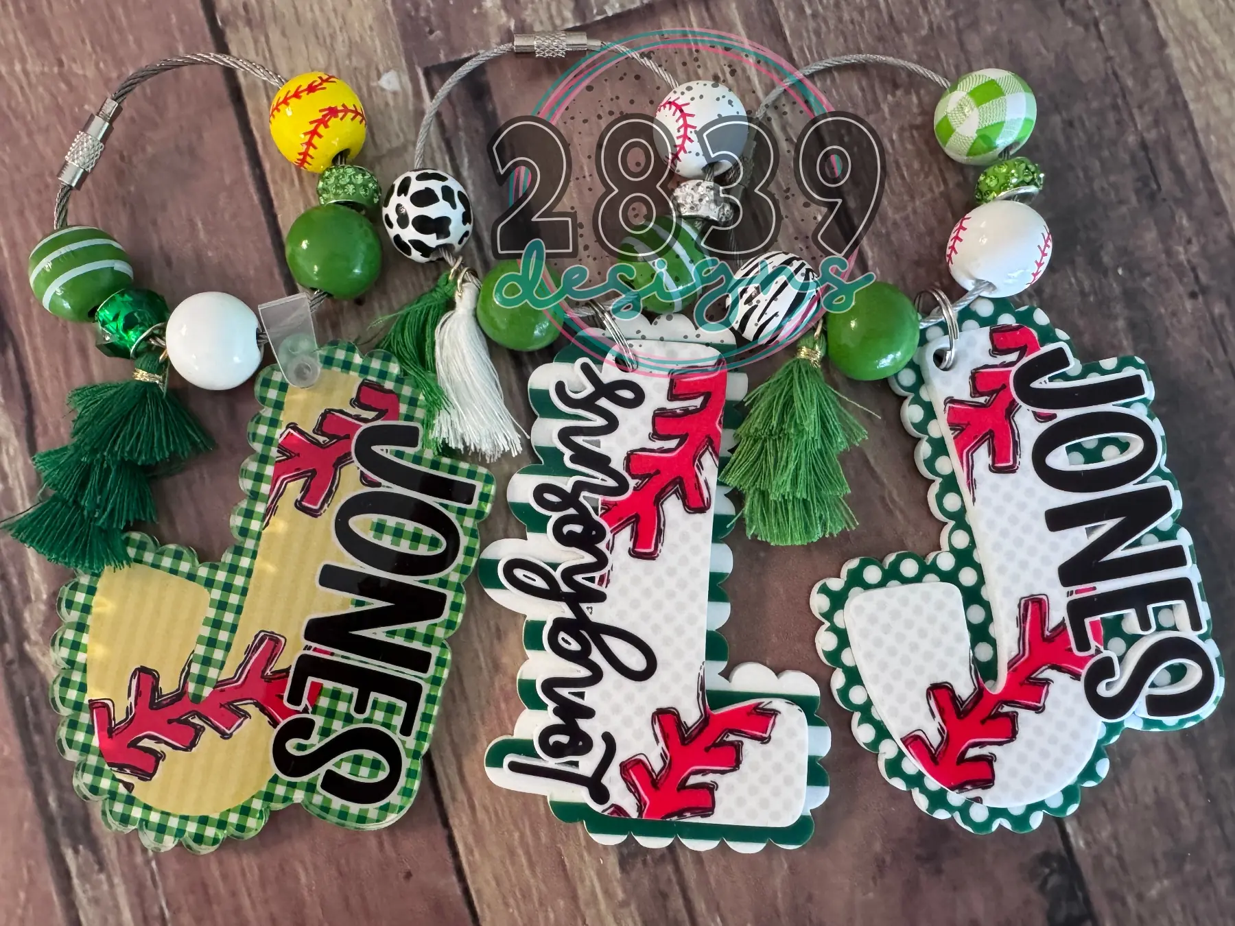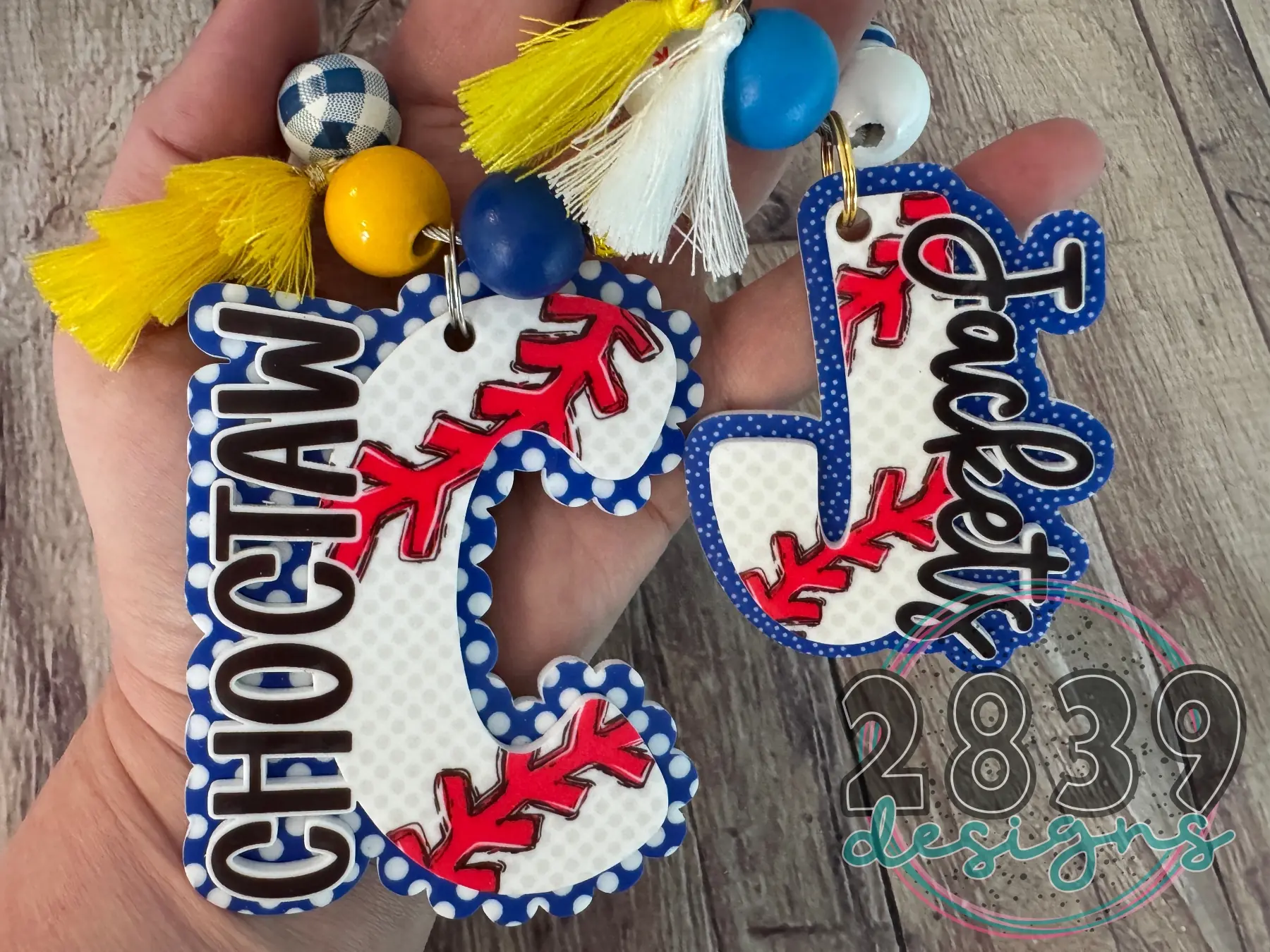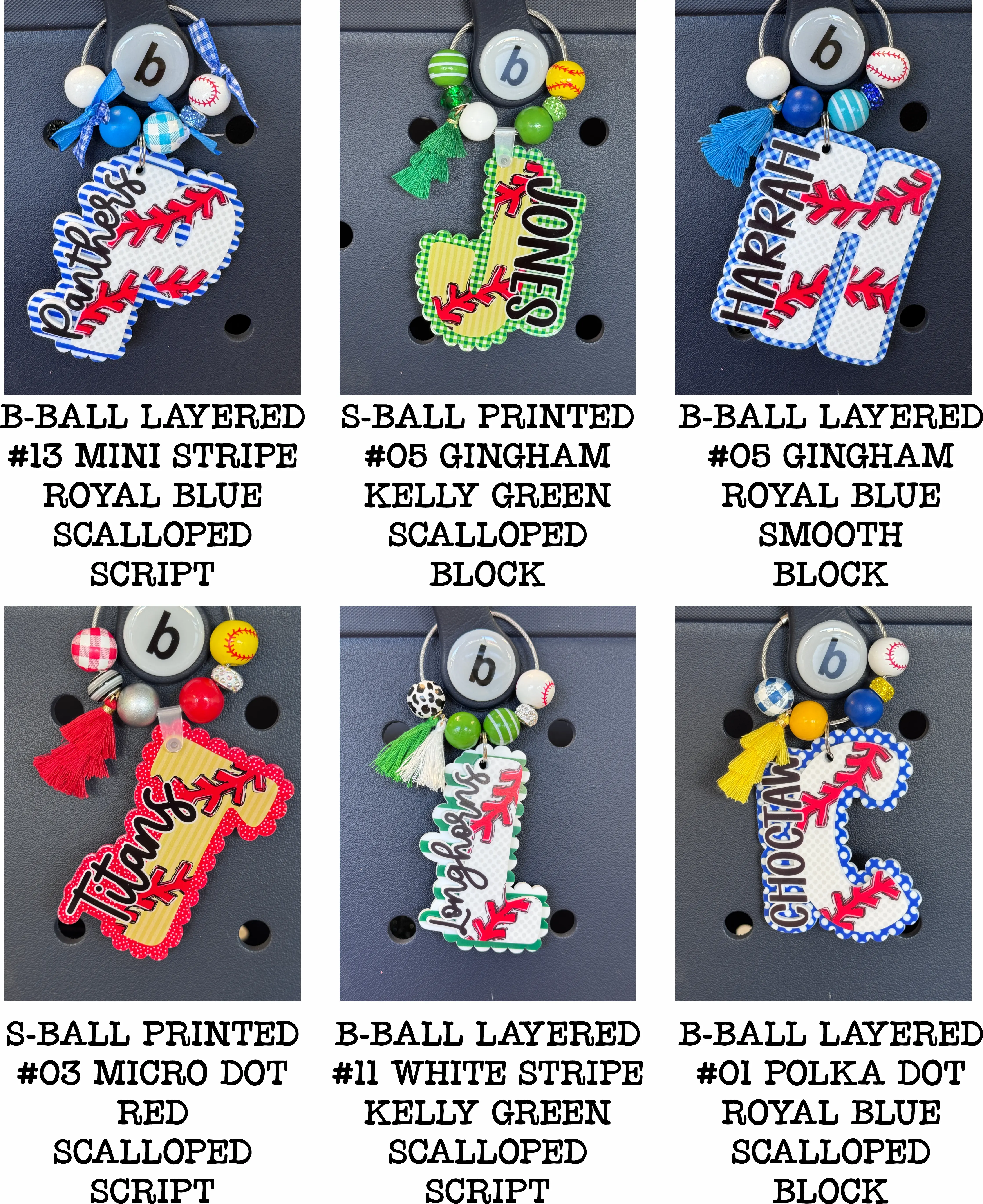 Personalized acrylic tag hand-made just for you in small-town Oklahoma! These custom name tags add personality and charm to just about everything! Our Baseball initial name tags are perfect for backpacks, lunch bags, sports/gym bags, coolers, MOM totes, laundry bags, overnight bags, diaper bags, carry-ons… These were created with teams in mind so team colors and minimal prints, however if you would like to mix it up with a fun print or bright color for the background reach out to us! We have hundreds of patterns to choose from and would be happy to make you a custom tag.