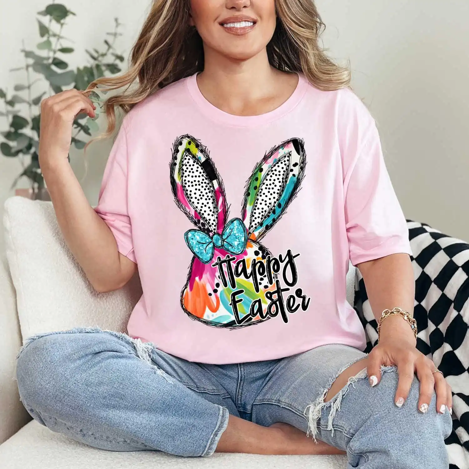 Happy Easter flower bunny shirt, Easter shirt, Bunny with bow t-shirt, Easter t-shirt, Mama bunny Easter t-shirt