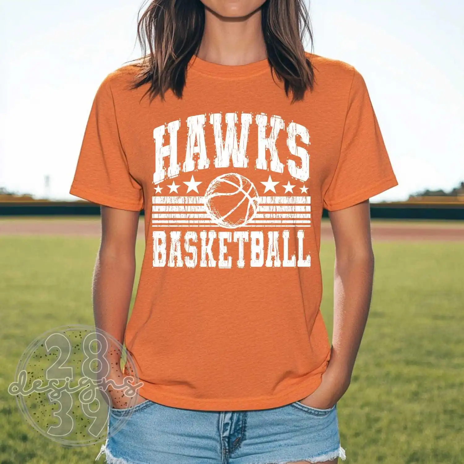 HAWKS retro basketball spirit wear t-shirt, team apparel with custom mascot name, Ball mom shirt